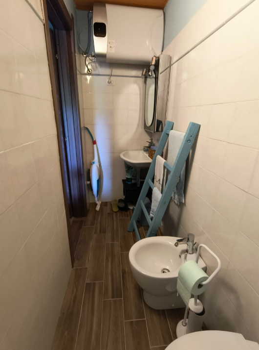 Eerste verdieping: een ruime hoofdslaapkamer, een tweede slaapkamer met vide die momenteel is ingericht als inloopkast (met mogelijkheid tot herinrichting als kantoor of extra kamer), een badkamer met ligbad en een ruime woonkeuken met toegang tot een panoramisch balkon. Vanaf hier geniet u van een prachtig uitzicht over de heuvels van Calosso, tussen wijngaarden en wijnranken, wat zorgt voor een bijzonder charmante en rustige sfeer.